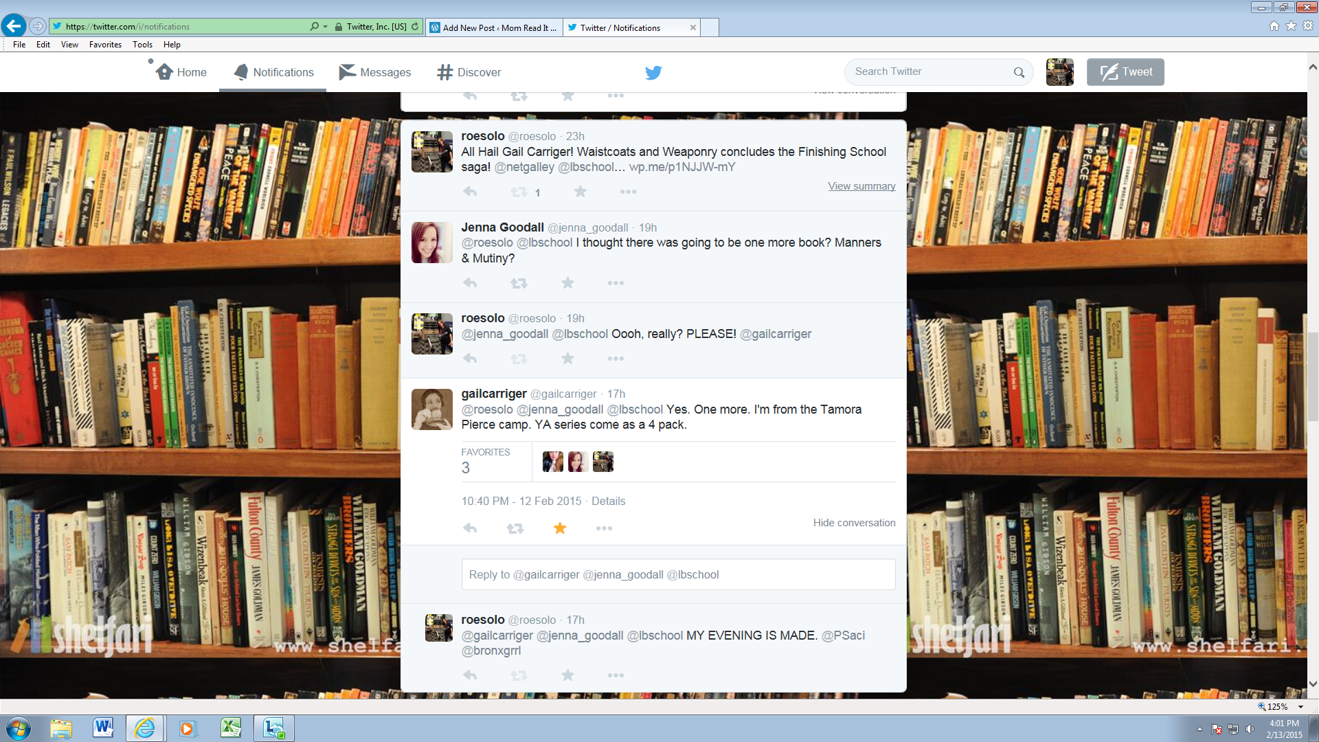 Now that I’ve fangirled properly over receiving a Tweet from Gail Carriger, I send huge thank-yous to Jenna Goodall and Ms. Carriger for enlightening me. Back to awaiting Prudence, and now, Manners and Mutiny!