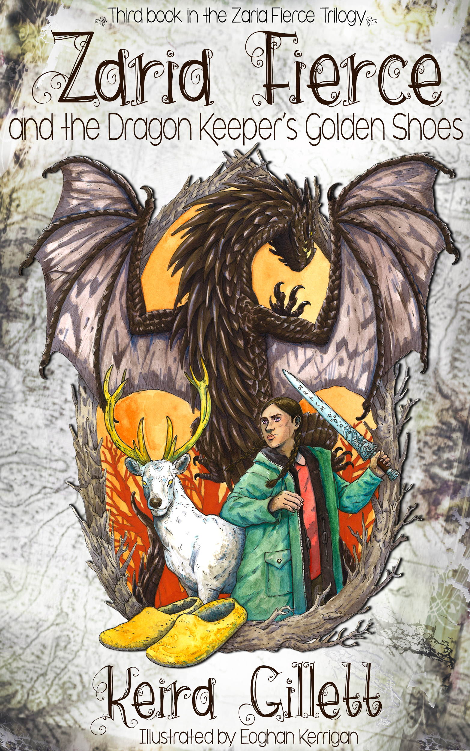 Eoghan Kerrigan has outdone himself this time. That dragon is beautiful – and wait until you see the illustrations inside. Zaria Fierce and the Dragon Keeper’s Golden Shoes publishes in paperback and eBook on July 1st!