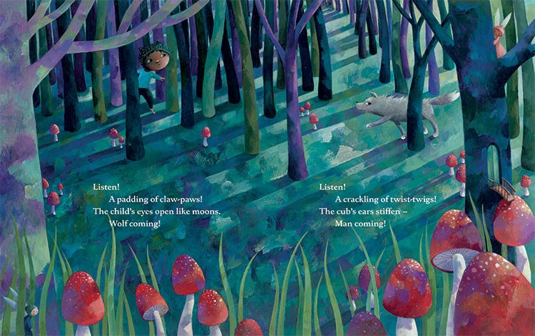 A young boy and a young wolf cub are each warned by their mothers. The boy’s mother warns of the wolves; the wolf’s mother, of men. The children listen, then go off and play, as children do. When each gets lost in the forest and come upon the other, their first reaction is fear; eventually, though, they discover that their similarities far outweigh their differences. And their mothers discover that they have a lot to learn from their children.