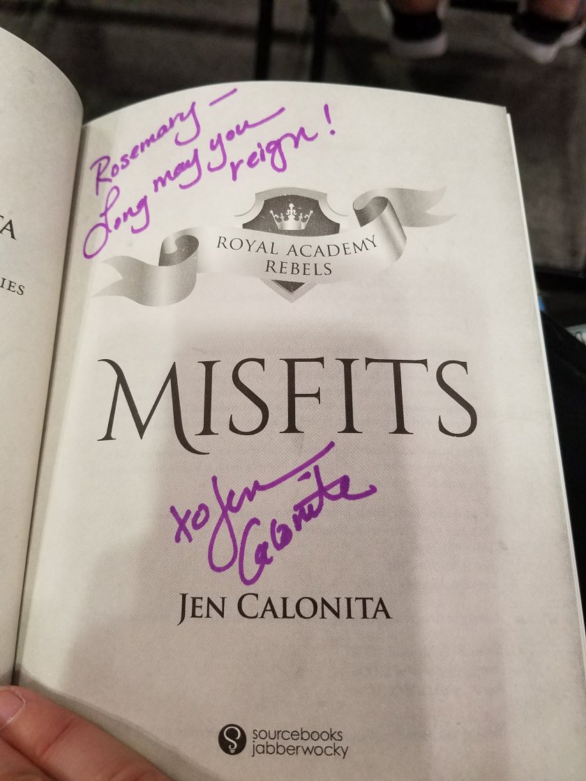 Jen Calonita signed her new Misfits book; she’s interested in coming back to my library, so I need to start nudging my program department ASAP. Squee!