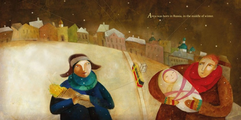 Anya is a young Russian girl who favors her left hand from an early age. She loves to create; she draws and paints, but she’s under constant scrutiny over her left-handedness. Even her neighbors correct her, saying things like, “The right hand is the right hand!” Under social and school pressure, Anya begins using her right hand to write, but she just can’t create with that hand. Her creativity, her art, flows from her left hand. Anya discovers a secret world of left-handed creators, including Leonardo DaVinci and Michaelangelo; she imagines herself part of their secret society, wearing masks to hide their identities as they flout conformity and use that sinister hand. When Anya’s family moves to America, though, she discovers that there is no stigma about which hand to use. She uses her left hand in public, and no one even notices! Her teacher doesn’t correct her! Anya is, at last, free to create.