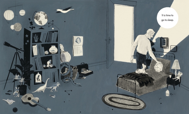 Parents will appreciate this book just as much as the kids do. It’s bedtime, but a little girl is not ready for bed yet: there are too many questions to be answered! “Why is the ocean blue? What is the rain? Why do the leaves change color?” One question leads to another in this story that many, many parents and caregivers will recognize. The responses will make you laugh even harder, because this caregiver has a sense of creative humor with his answers. Just Because is an invitation to the imagination for parents and kids alike, and is an instantly recognizable, tongue-in-cheek recreation of bedtime and its many delays. Isabelle Arsenault’s gouache, pencil, and watercolor artwork is minimal in color, with pale color to pages for emphasis, and wonderfully brings each answer to life: we have dinosaurs strapped to giant balloons and birds, warming themselves by a matchstick that blooms into an autumn leaf. Let this book guide you the next time you’re tempted to respond, “Just because” to a child’s question. Don’t miss this one.