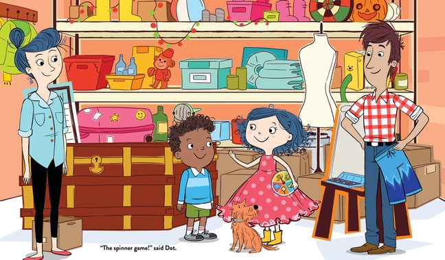 Wow, do we need this book now. Dot and her family are addicted to their screens, to the point where Scratch, the family dog, is feeling pretty neglected. A power outage reminds Mom that it’s the National day of Unplugging, so the family has to get creative in finding ways to have fun sans electricity. And boy, do they! They search their basement and find a spin game that encourages them to do something fun with each spin of the wheel: sing a song, craft something, the possibilities are pretty endless.
