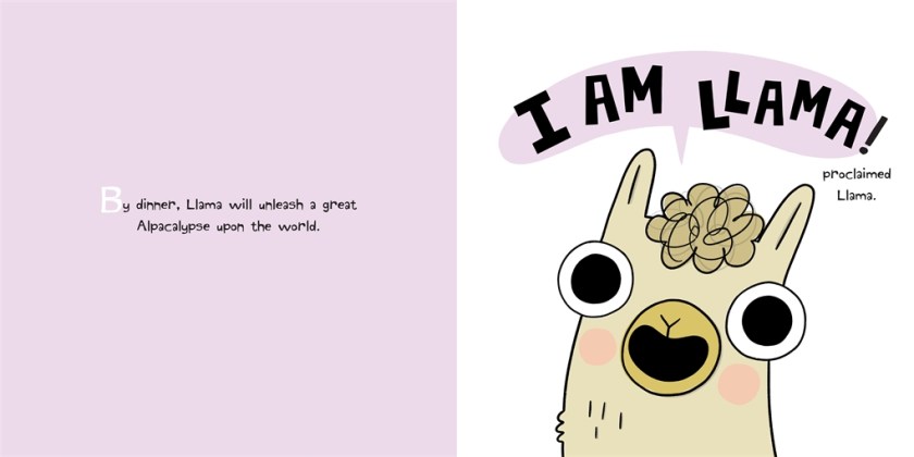 I am slightly obsessed with picture books, I’ll be the first to tell you. Llama is one of my latest obsessions. The first book, Llama Destroys the World, is HILARIOUS. Like, my Kiddo and I attempt to read it together where I’m the narrator and he’s the Llama, and we can’t get through it in one shot because we’re laughing so hard. So when I had the chance to receive a copy of Llama Unleashes the Alpacalypse from the publisher, you bet your bippy I said yes. And it is every bit as laugh-out loud funny as the first book.
