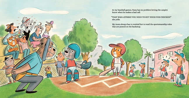 Who’s got a bigger fan than Nana? Not this little pup, whose Nana cheers him on at all his games, schedules her hair appointments around his swim meets, and buys up all his art at school auctions. Nana’s there to argue with the referees and dance in the aisles at recitals, but when she takes a spill and hurts her foot, Nana needs a fan to cheer her on, too: it’s not easy for someone to sit still when they’re used to being in constant motion! A cute little story about a grandmother who may be a little over-enthusiastic, judging by the expressions on folks when she’s pushing her way onto the swimming pool bench to nudge her grandson to the front of the line, or arguing a bad call with a referee during a softball game, Nana is relatable to a lot of us (some of my own loving, but not finest moments come to mind). What turns this around from being another “unconditional love from grandparent” story is how Nana is derailed by her injury – she’s super-competitive and an athlete, herself – and how her grandson has to use the motivation she always has ready for him to convince her that she can take it easy and take care of herself, with his help, just for a little while. Tender and funny, this is a good grandparent story for littles and the caregivers who love them.