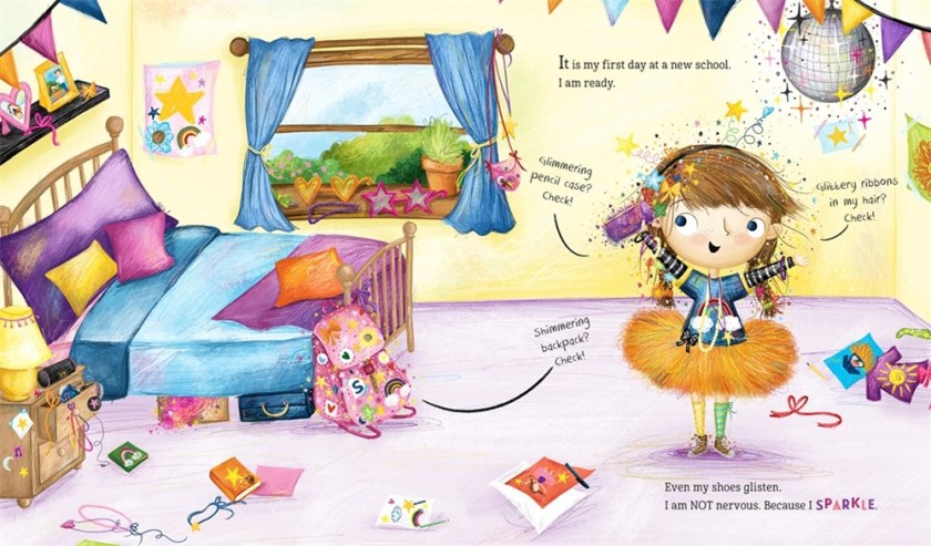 Sparkella is all ready for her first big day at school: she’s got her glimmering pencil case, shimmering backpack, glittery ribbons, and glistening shoes, all ready to make a sparkly splash! Her dad dons a pink feather boa and escorts her there, sharing dance moves along the way. But when Sparkella gets to school, her classmates don’t seem to “get” her sparkle at all. Sad, leaves school, telling Dad to call her “Ella”, and strips all sparkle from her look. But trying to fit in is killing her inner sparkle, too! Luckily, Dad knows how to get Ella to find her sparkle again, and when Sparkella returns to school, she spreads her glittery charm around and discovers some new friends. Written by actor/director/producer Channing Tatum, for his daughter Everly, The One and Only Sparkella is an adorably fun and sweet book about being true to yourself, embracing what makes you unique, and the wisdom of Girl Dads. Channing Tatum has made headlines for dressing up with his daughter, and her influence is all over this playful story. Parents and caregivers will see the kids they know and love in this story, from the shimmery, glimmery clothes and accessories, to the fabulous take on Ella’s name when she becomes Sparkella, to the struggle to fit in and make friends while trusting their inner voices. Dad is supportive and present, strutting down the street in a feather boa, busting out impromptu dance party moves on the way to school, and deftly figuring out how to get his daughter to open up to him by making it look like she’s the one dispensing advice. Kim Barnes’s playful artwork is loaded with pinks, fuschias, and glittery, bright colors that make every turn of the page a joy. When Ella’s world goes bland for a few spreads, readers will wait with baited breath for the splash to come back. Bright pink endpapers, filled with glittery poop (it’s part of the storyline), feathery school utensils, and fashionable accessories, make this a read that kids will come back to whenever they need a little glitter in their day. Find The One and Only Sparkella Zoom backgrounds and activity kit printables here!