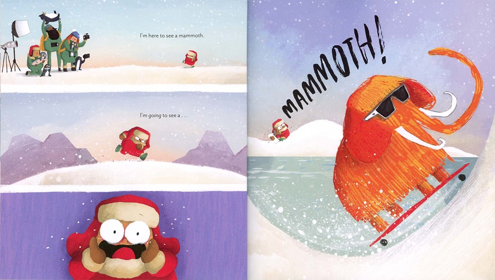 An expedition heads to the Antarctic to see penguins, but one young explorer has their sights set on a greater prize: a mammoth! Sure enough, every time the party is otherwise occupied, a mammoth appears, but does the group believe the excited kiddo? You never know what could show up on a scientific expedition in this hilariously fun story that makes for a spirited readaloud. Colorful cartoon artwork and bold black fonts add to the child’s exasperation as they desperately attempt to call the others’ attention to the discovery of a lifetime. Back matter features some information on penguins and mammoths, and the chances of meeting one or the other. A great choice for a storytime – pair with Russell Ayto’s Henry and the Yeti for a doubly fun storytime.