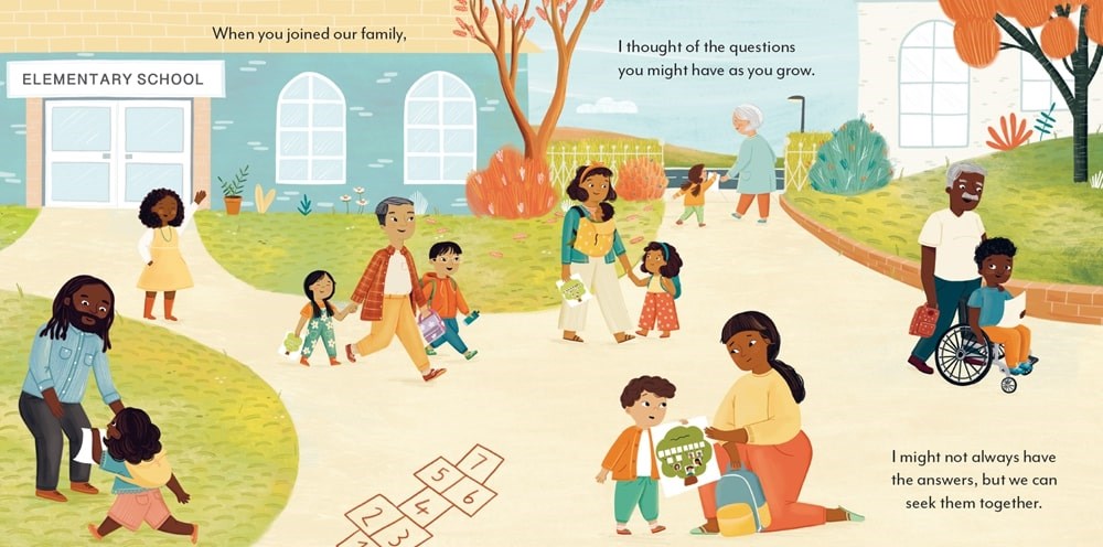 Adoption can bring up a lot of feelings and questions. When You Joined Our Family, written from an adoptive parent’s point of view, connects with them. A warm hug of a story, this could be any number of voices contributing to the narrative; a collection of adoptive parents talking about their experiences: “When you joined our family, I knew you were just who I’d waited and wished for”; “We spent time together, and you learned that I will always keep you safe”; “…I vowed to celebrate the ways you are unique… and the ways we are alike”. Positive, loving observations pair with multicultural, inclusive families of different ages, physical abilities, and households. Colorful digital illustrations are warm and inviting, showing families enjoying their time together. A very good choice for collections. Display with books like Jamie Lee Curtis’s Tell Me Again About the Night I Was Born, Carrie A. Kitze’s I Don’t Have Your Eyes, and Justin Richardson and Peter Parnell’s And Tango Makes Three. Adoption & Beyond has a list of adoption books for children at their website.