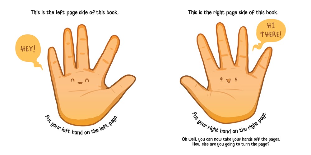 Learning left and right is a fun-filled romp with this handy picture book that takes readers on an adventure while teaching them their left from their right. From the bold, large text to the fun, bright illustrations, readers will pick this book up for multiple reads. Starting with illustrations of smiley hands on left and right pages to allow readers to match their hands to the ones in the book, the story progresses to the need to know one from the other in case the reader gets lost in a forest and has to ask directions from a bear, withstanding wind and rain, and finally, the silliest challenges to test your left and right knowledge. The interactivity makes this a great readaloud choice. Back matter includes handy cut-out bracelets, but PLEASE scan and print them to (hopefully) save your book in circulation or keep the bracelet printouts on hand to distribute during storytimes and keep a copy in storytime reference. All in all, a fun book that takes on a concept that can sometimes frustrate new learners.