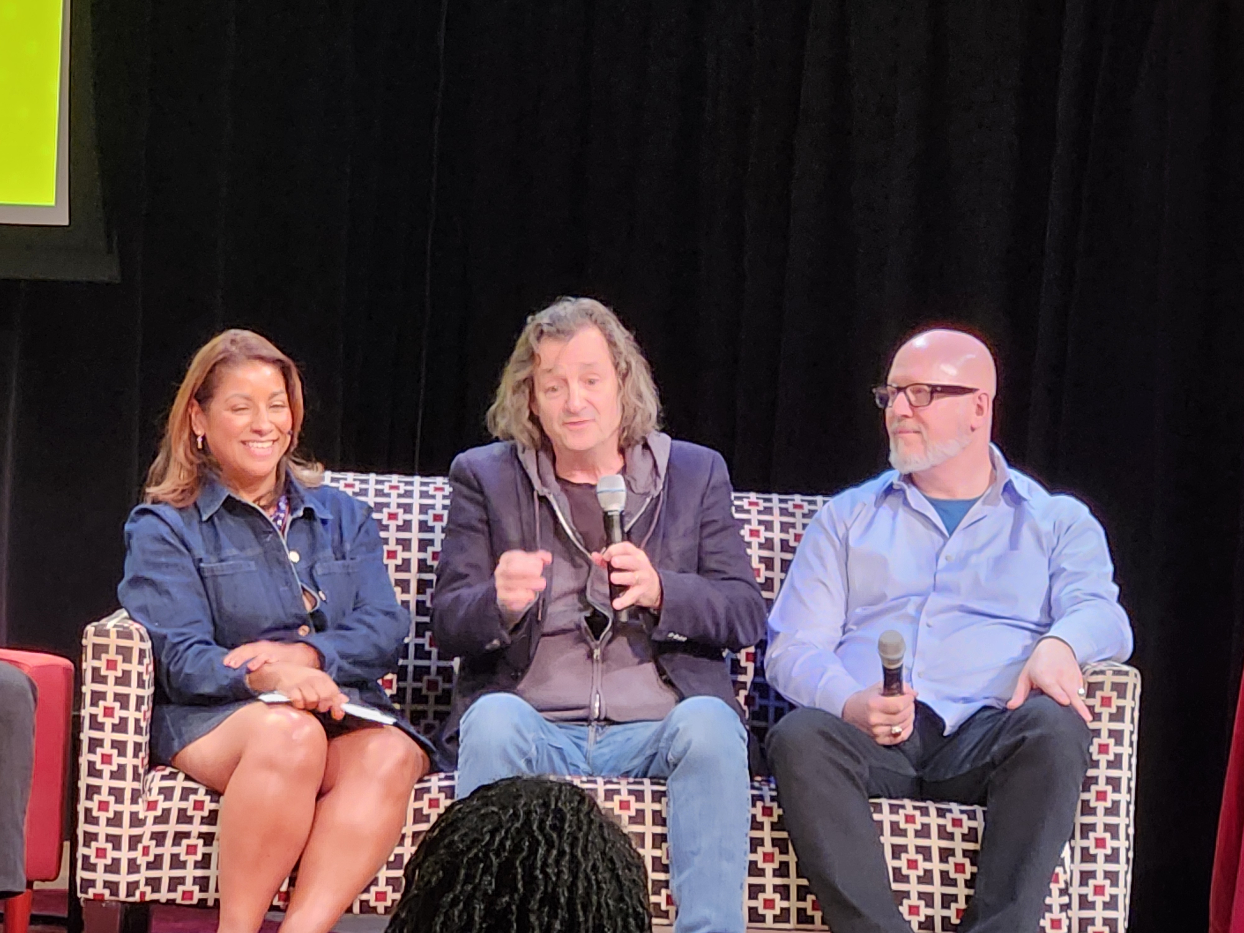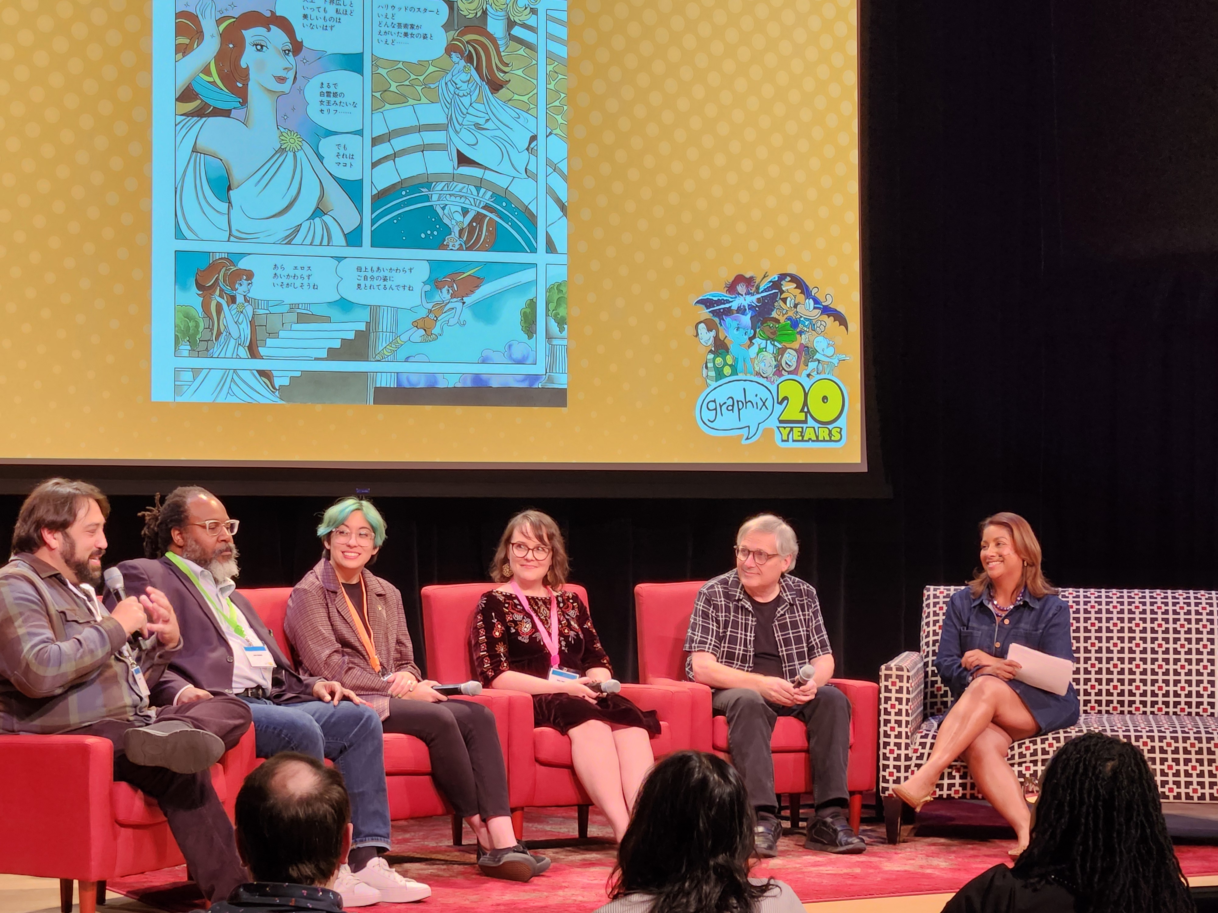 I screwed my courage to the sticking place and talked comics with Samuel Sattin, Raina Telgemeier, and Scott McCloud, and Mr. McCloud was kind enough to take a picture with me.