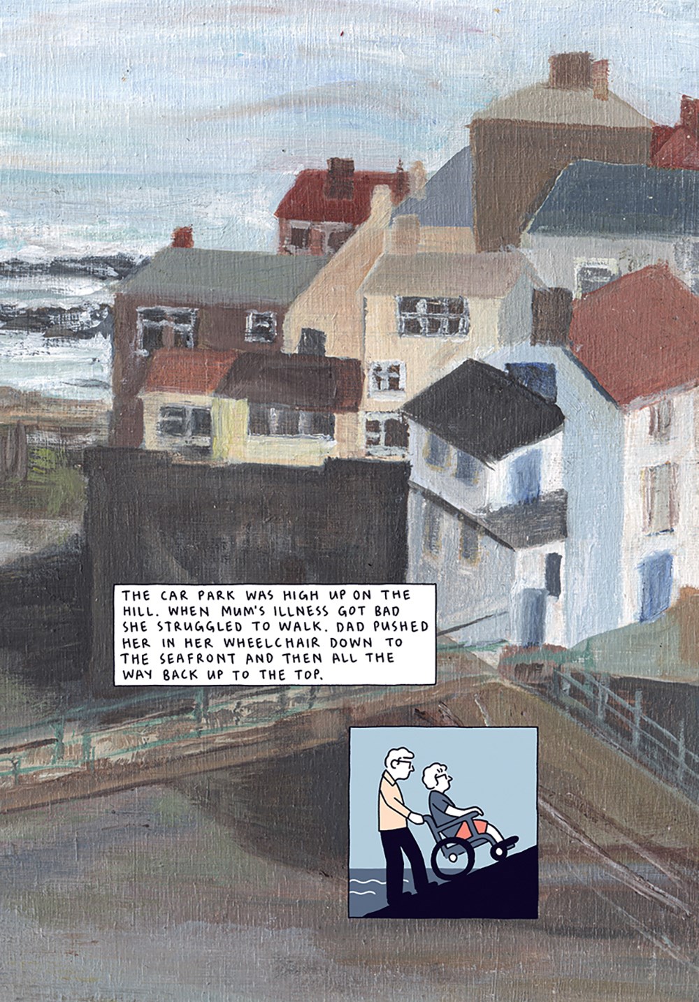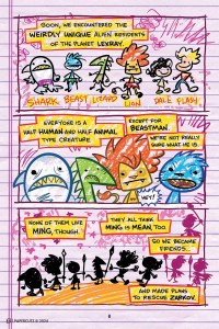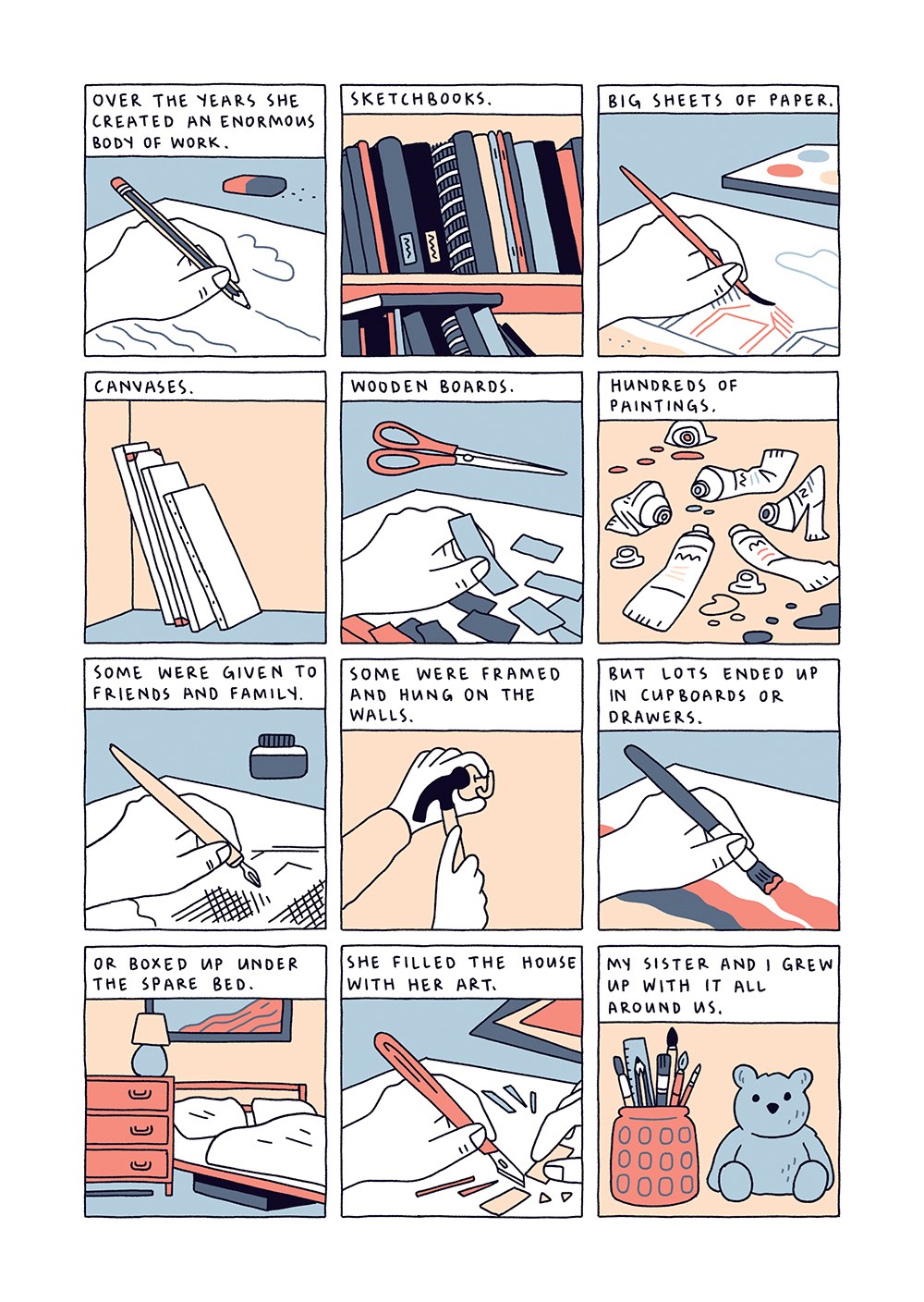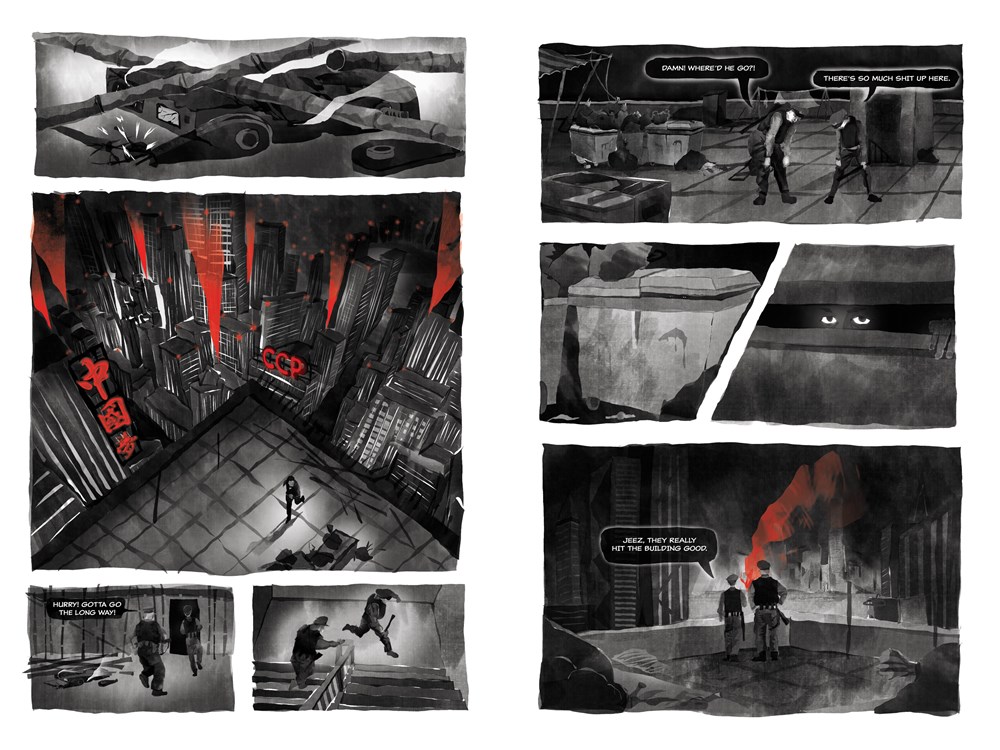 In 1978, Hugh discovered his friends crying outside their home in his neighborhood. They had come home from school and discovered their mother lying on the floor, murdered. Forty years later, he’s an adult with a successful career and social life, but he’s also haunted by the murder and experiences anger, anxiety, and panic attacks. Through The Murder Next Door, he examines his trauma and its roots, moving between sessions with his therapist and his memories. Using light blue and black illustration, with red for jarring emphasis, D’Andrade’s art is at once stark and dreamlike; his recall so painful, the reporting at odds with what D’Andrade witnessed, that it all churns in his mind, feeding his anger, his anxiety, his constant feeling of dread. He becomes an adult who baits conspiracy theorists, an adult never quite secure. Writing this memoir, D’Andrade allows readers to sit in on his therapy sessions and see where young Hugh was forced to bear witness to the unthinkable; we see the scars it left, rendered in red ink for readers to witness. A moving portrait of youth lost and of resistant trauma.