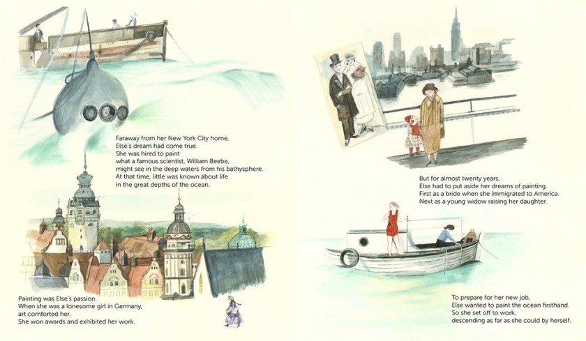 Most folks know what a Tiffany Lamp looks like: bold, black outlines, luminous colors that bring incredible flora and fauna to life. Did you know that Tiffany wasn’t the creator of the Tiffany Lamp? I sure didn’t until I read Making Light Bloom and learned that a woman named Clara Driscoll and her “Tiffany Girls” were the creators of the lamps – and that no one knew about this until after both Driscoll’s and Tiffany’s deaths. Born in Ohio in 1861, Driscoll grew up surrounded by nature and sketched her surroundings. When she moved to New York City to “turn her talent for drawing into a skill that could help” her family, she was taken aback by the crowds and towering buildings, but she was in the right place at the right time. Securing a job with Louis C. Tiffany, she joined a team of artists that created pictures and shapes for stained glass windows. Eventually, her talent got her promoted to leading a team of women in her own workshop. Driscoll, receiving inspiration from flowers and butterflies sent from home, worked with the Tiffany Girls to create a stunning lampshade that won a bronze medal at the World’s Fair. Despite sexism from the male craftsmen, Tiffany continued having Driscoll make lamps, but they were referred to as “Tiffany Lamps”: people believed Louis C. Tiffany made them. Clara Driscoll went unnoticed and uncredited until her last sister passed away and letters from Clara were discovered, shedding light on the true architect of the Tiffany Lamp. Ink and gouache illustration created in the style of a Tiffany Lamp adds a breathtaking beauty to this picture book biography. An excellent STEM/STEAM addition to collections, with a bibliography and notes on the Tiffany Lamp and Driscoll’s letters.