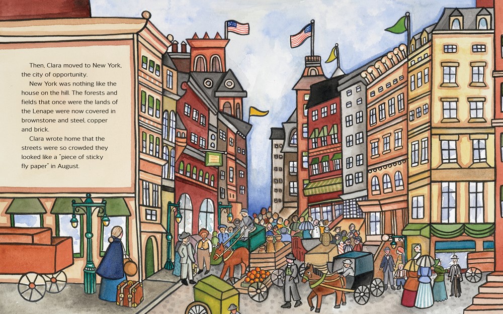 Most folks know what a Tiffany Lamp looks like: bold, black outlines, luminous colors that bring incredible flora and fauna to life. Did you know that Tiffany wasn’t the creator of the Tiffany Lamp? I sure didn’t until I read Making Light Bloom and learned that a woman named Clara Driscoll and her “Tiffany Girls” were the creators of the lamps – and that no one knew about this until after both Driscoll’s and Tiffany’s deaths. Born in Ohio in 1861, Driscoll grew up surrounded by nature and sketched her surroundings. When she moved to New York City to “turn her talent for drawing into a skill that could help” her family, she was taken aback by the crowds and towering buildings, but she was in the right place at the right time. Securing a job with Louis C. Tiffany, she joined a team of artists that created pictures and shapes for stained glass windows. Eventually, her talent got her promoted to leading a team of women in her own workshop. Driscoll, receiving inspiration from flowers and butterflies sent from home, worked with the Tiffany Girls to create a stunning lampshade that won a bronze medal at the World’s Fair. Despite sexism from the male craftsmen, Tiffany continued having Driscoll make lamps, but they were referred to as “Tiffany Lamps”: people believed Louis C. Tiffany made them. Clara Driscoll went unnoticed and uncredited until her last sister passed away and letters from Clara were discovered, shedding light on the true architect of the Tiffany Lamp. Ink and gouache illustration created in the style of a Tiffany Lamp adds a breathtaking beauty to this picture book biography. An excellent STEM/STEAM addition to collections, with a bibliography and notes on the Tiffany Lamp and Driscoll’s letters.