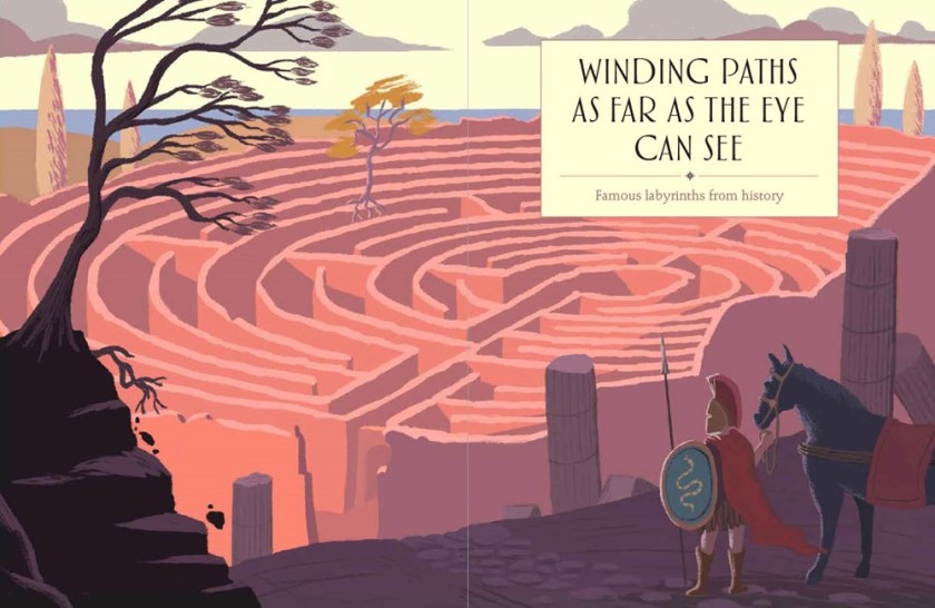 Part activity book, part reference guide, this book on mazes and labyrinths will send puzzle fans over the moon. Organized into four sections: I Think I’m Going Crazy! explains the differences between a maze and a labyrinth, how detours can lead us to our goals, and mazes and labyrinths within our bodies and our lives; Winding Paths as Far as the Eye Can See spotlights famous labyrinths from history; To The Center, Please! looks at the journey to the center of a labyrinth – and how to get back out, and Strange Paths! leads readers to mazes all around the world. From Theseus and the Minotaur’s labyrinth of legend to the quiet contemplation of walking a labyrinth in n nature, beautifully illustrated spreads include mazes and activities for readers to complete and ideas to mull over. A guide to solving mazes will help readers before they wander into a maze (hey, Fall’s coming… corn mazes!). Back matter includes more information about famous labyrinths worldwide and a glossary. Great for reference collections. History fans and brain buster fans will devour this one.