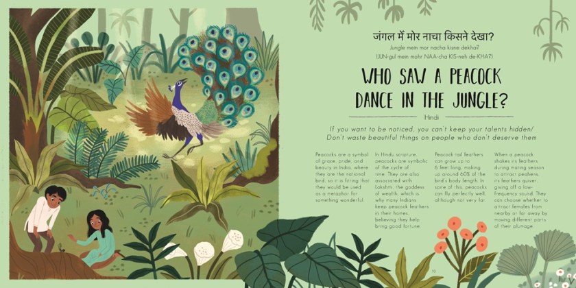 This collection of phrases and idioms from all over the world is a great little resource. Kids will easily recognize some phrases, like “buttering a person up”, and “raining cats and dogs”, but will they know where “seeing a peacock dance in the jungle” comes from? How about “peeing in your shoes will only keep you warm for a little while”? The origins of these phrases are interesting and amusing, and this little collection contains explanations, a phrase in its native language and phonetic pronunciations, and colorful illustrations. There’s no cow on the ice here (Swedish for “no rush”), but consider this one for your quirky readers who enjoy playing with language. What a Wonderful Phrase is a companion to What a Wonderful Word (2018).