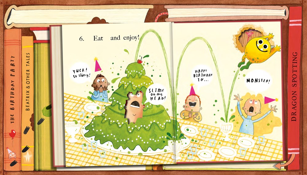 Nibbles has long had a place in my heart – my middle schooler was a big fan as a little guy, and I’ve never grown tired of this goofy little book monster’s escapades. Nibbles is up to his usual silliness in this latest book, which is chock full of flaps and die-cuts as Nibbles chomps his way through a series of books, leaving holes in hilarious spots: a cookbook sports a peek a Nibbles’s bottom sticking out of a cake pan; a Hansel and Gretel cover has been chewed away to show Nibbles running at full speed; Old Macdonald Had a Farm shows Nibbles’s head peeking out atop the cow’s body. The little yellow monster gorges himself until he comes to the book’s close and his little crate: but will he go in, or will he eat his way through that, too? Great for an interactive readaloud or a scavenger hunt (just print a few Nibbles coloring pages here and set them around!), Nibbles is an enduring character whose antics always make for fun.