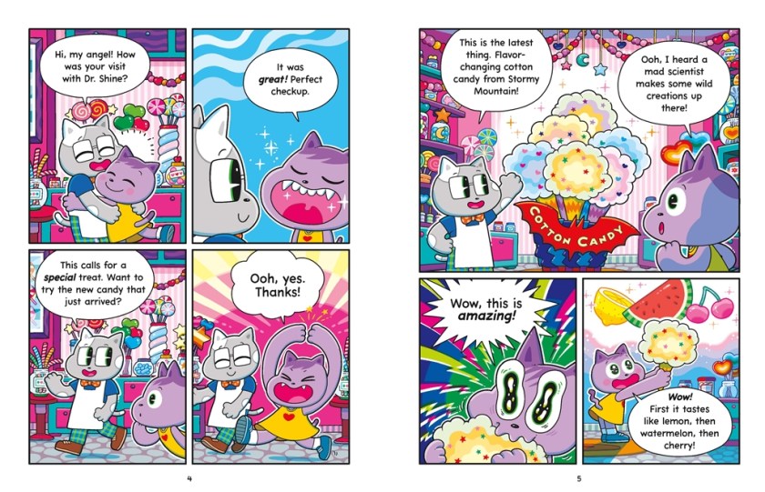 Nyuki is an inquisitive honeybee larva who has a lot of questions for Dvorah, an older bee who ends up being her mentor. Why does her cell have to be capped off? Why does she have to go through metamorphosis? Why are some of the bees getting ready to leave the hive? Can she go? Should she go? Is Dvorah going to go? Dvorah patiently answers Nyuki’s questions, and helps Nyuki develop into an independent member of her colony. The story follows the life journey of one honeybee and the members of her hive. Nyuki is childlike in her interactions, and never loses her sense of wonder and curiosity, making her a wonderful character. She struggles with anxiety about the unknown and adapts, always puzzling over the “inner voice” that spurs her on to adventure. The story is sweet, funny, and moved me to tears. Illustrations are realistic, but Jay Hosler manages to make these realistic depictions of bees simply adorable; readers will want to cherish them and care for them. The science is solid, but never, ever feels like a lecture or a textbook. It’s simply a great story. An absolute must for your graphic novel collections, and perfect for Science Comics readers. Back matter includes even more information about bees.
