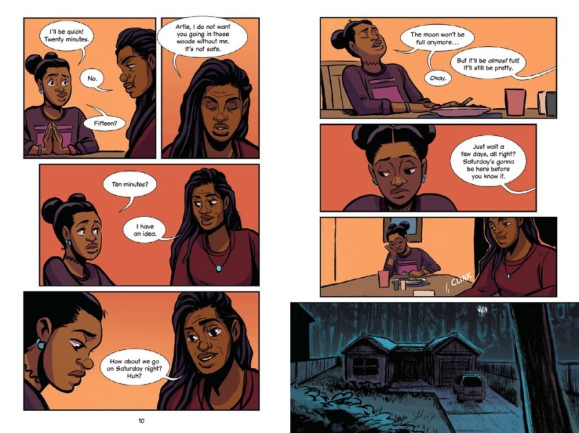 I’m always happy when an online comic makes it to print. Many of my library kids only have computer access here at the library, so print comics and graphic novels are the way to reach them best (also, they’re here to do homework and play Minecraft and Roblox; reading comics online isn’t always on their radar).