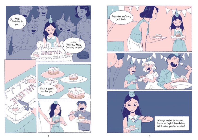 Valerie Chu tries to be the perfect daughter. She’s studious and quiet; she’s an obedient daughter. Her mother’s obsession with food and being thin starts early, when she tells Valerie “don’t eat, just taste” a piece of her own birthday cake; she constantly monitors what Valerie eats. Val’s disordered eating mirrors most cases we hear and read about: she’s focused on being perfect, giving no one any reason to find a flaw. Val’s best friend, Jordan, has no such compulsion: curvy and confident, Jordan enjoys food and she enjoys life, earning Valerie’s mother’s quiet disdain. The two head off on a school trip to Paris where Valerie enjoys the taste of freedom, only to be called home for a family tragedy. As Valerie grieves, she has no time for perfection and her eating disorder is pushed to the side and gains her mother’s notice. Valerie must come to terms with her mother’s toxic ideas on beauty in order to move forward. Brilliantly written and illustrated with a haunting, ethereal beauty, Hungry Ghost is a heartbreaking look at the beginnings of body dysmorphia and how our families can create monsters within us. Back matter includes an author’s note and resources for eating disorders and recovery.
