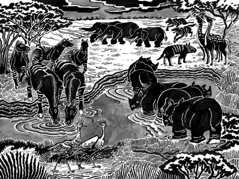 Author Alison Pearce Steven’s website includes links to fun science videos and to activities related to Rhinos in Nebraska via TeachersPayTeachers.com. You can find more of Matt Huynh’s illustration work at his website. The American Museum of Natural History has a great, printable sedimentary layers puzzle available for free download.