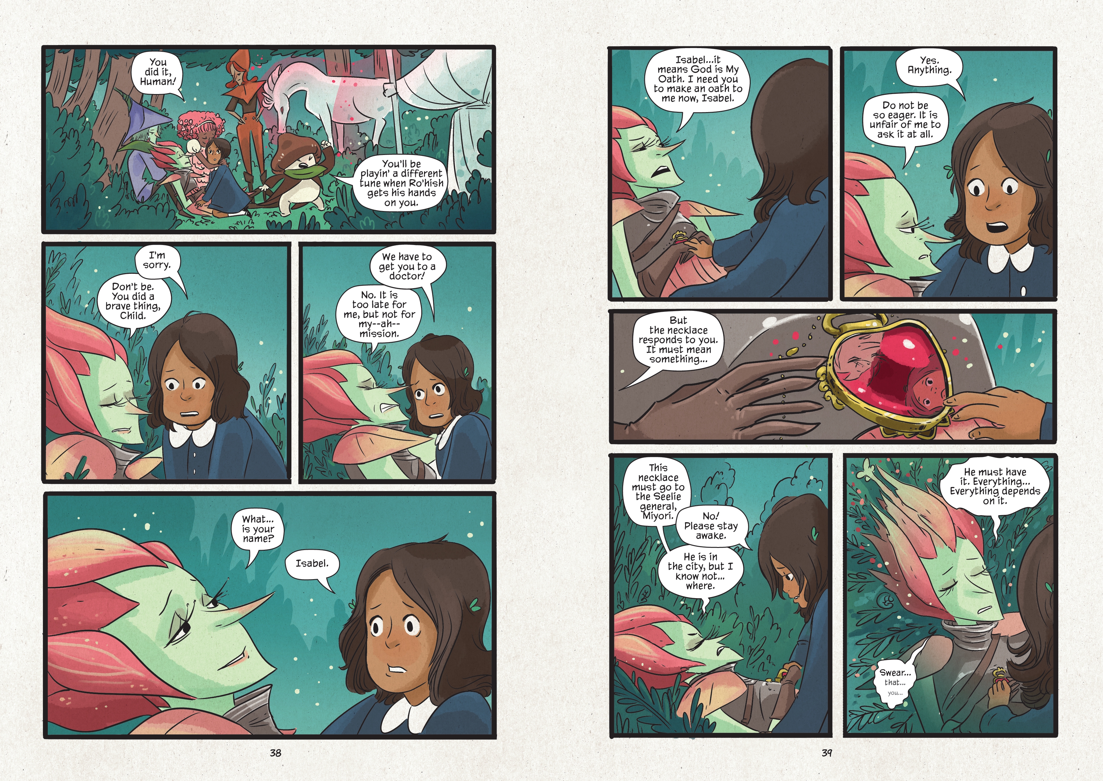 It’s early 20th-century San Francisco, and Isabel is bored. Her high-society mother expects her to be quiet, well-behaved, and flawless – clean, pressed, clothes in perfect repair. She’s shuttled off to her artist father for the summer, but he’s too wrapped up in his work to pay much attention to her, either. Taking matters into her own hands, Isabel explores the woods by her father’s home and stumbles into a fairy world: a world where two kingdoms are at war! She receives a magical necklace to keep safe, and, with the help of some new companions, sets off to end the war before it destroys the fairy world and our own world.