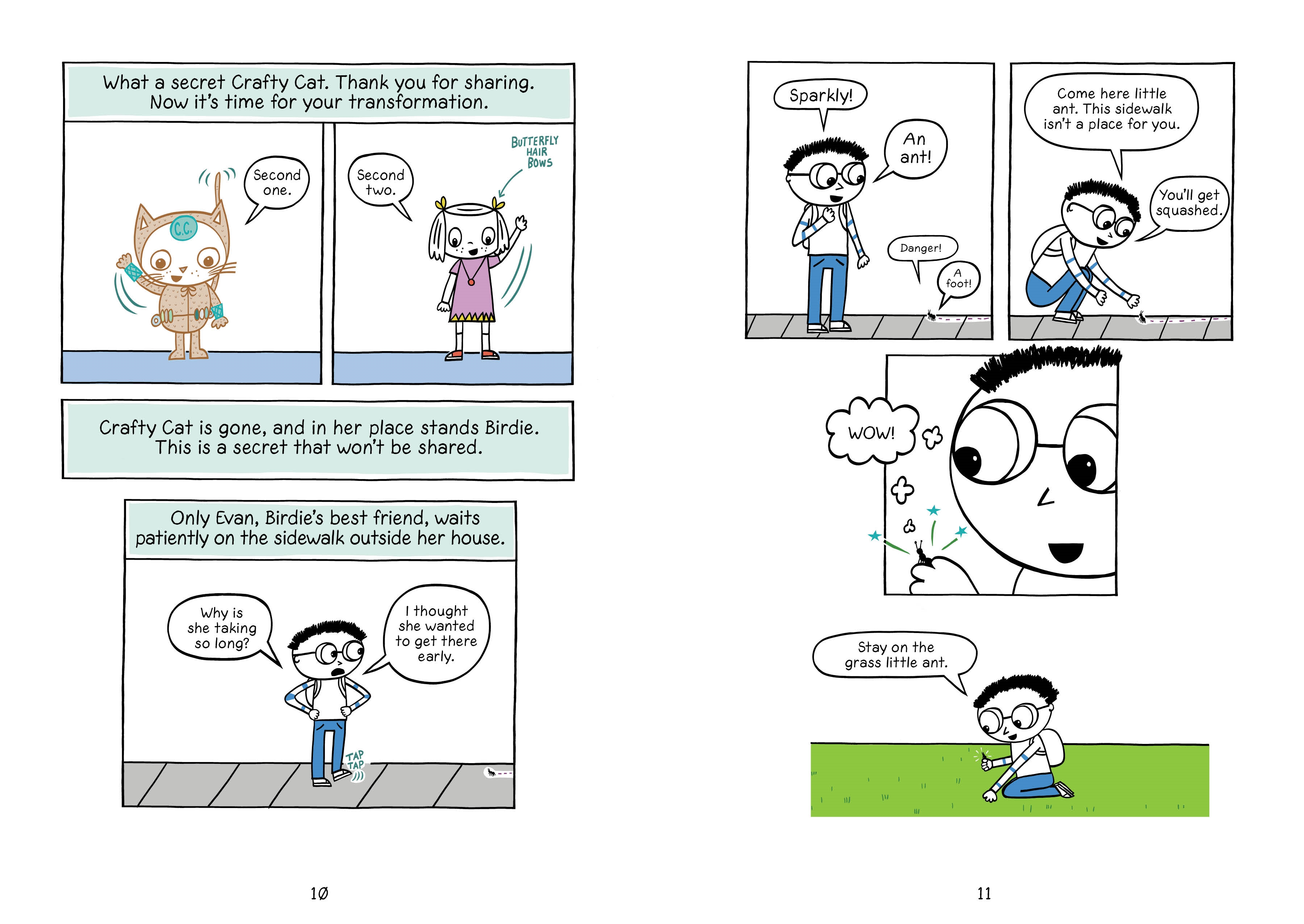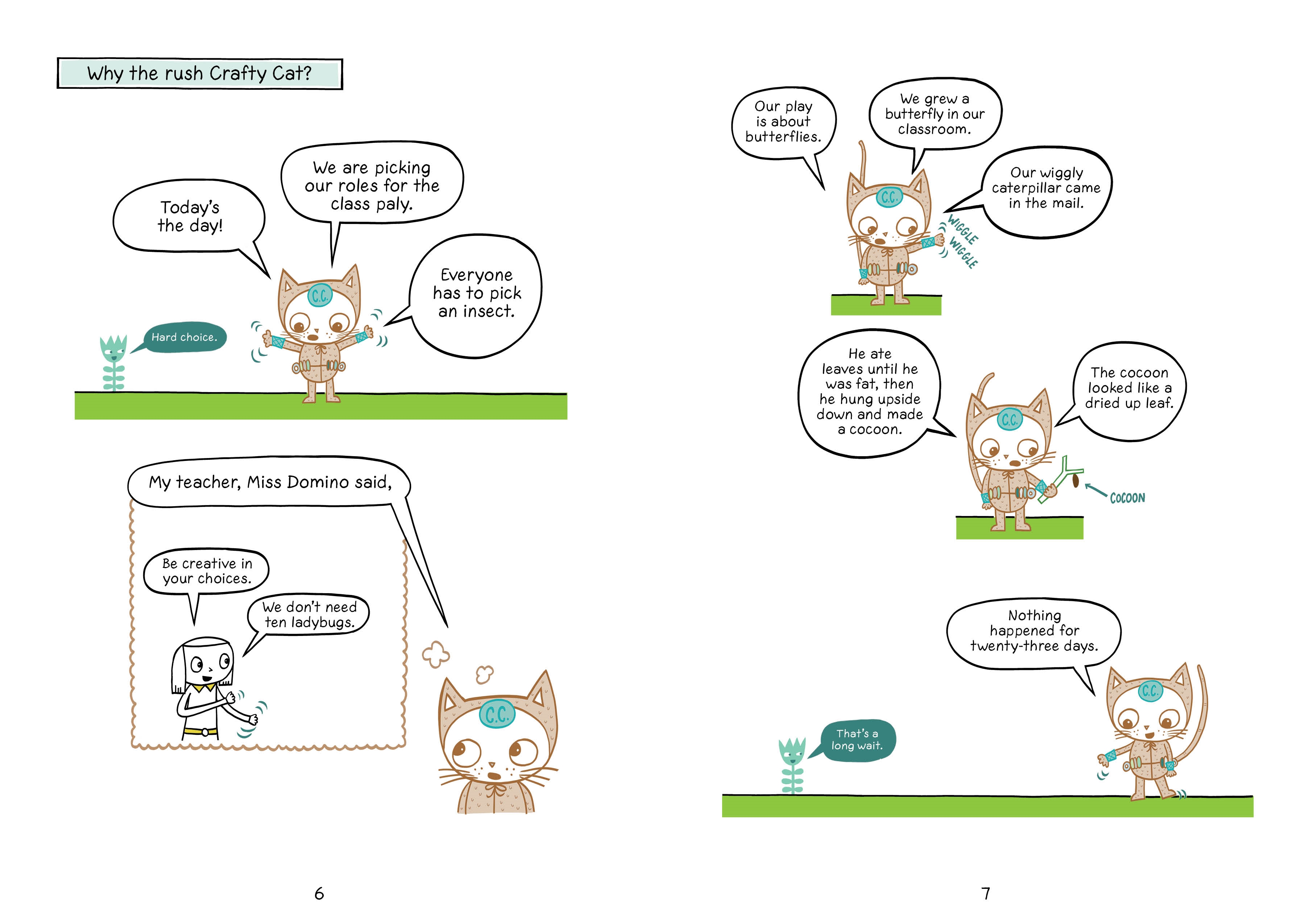 The third Crafty Cat comic book has Birdie – whose alter ego is crafty superheroine Crafty Cat – ready to take the lead role in her school play about bugs. The problem is, everyone wants the role: it’s a butterfly! Anya is back, and she wants to be the butterfly, too – and Anya always seems to get her way. Looks like a job for Crafty Cat!
