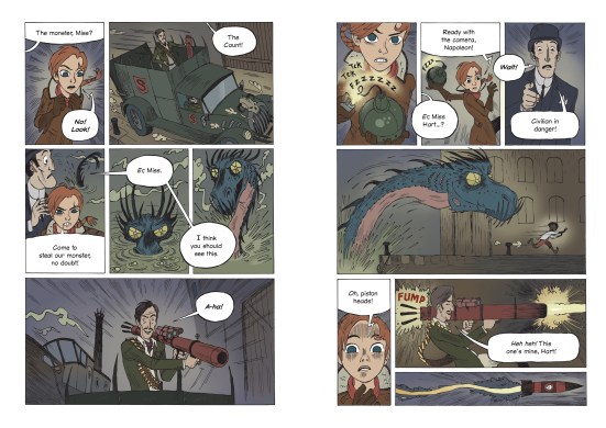 Scarlett Hart is a fun monster-catching adventure romp, with a dieselpunk feel and a spunky young heroine. Thomas Taylor is the original illustrator of Harry Potter and the Philosopher’s Stone, and knows fantasy art. There’s humor, adventure, and fun to be had; a nice start to a new graphic novel series. Give these to your Delilah Dirk readers, and consider re-introducing readers to Shannon, Dean, and Nathan Hale’s Rapunzel’s Revenge and Calamity Jack.
