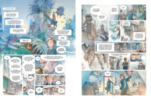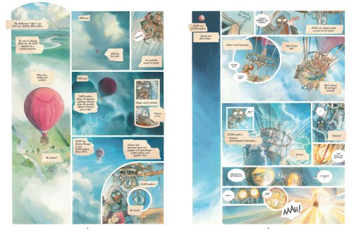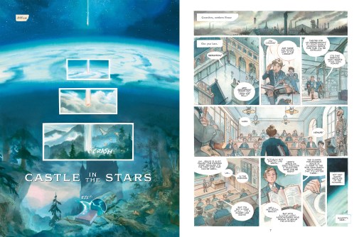 This first volume of Castle in the Stars spends time setting up the story and developing characters. It’s nice to see both parental figures involved, with a female character every bit as intelligent and accomplished as the male character. The art has a touch of manga inspiration, particularly with the character, Hans, who’s drawn to communicate his mischievous side. There’s a Jules Verne feel to the story; intrigue mixes with the race to explore the unknown, and with Seraphin’s heartfelt belief that his mother is still alive, we have a bit of mystery thrown in.