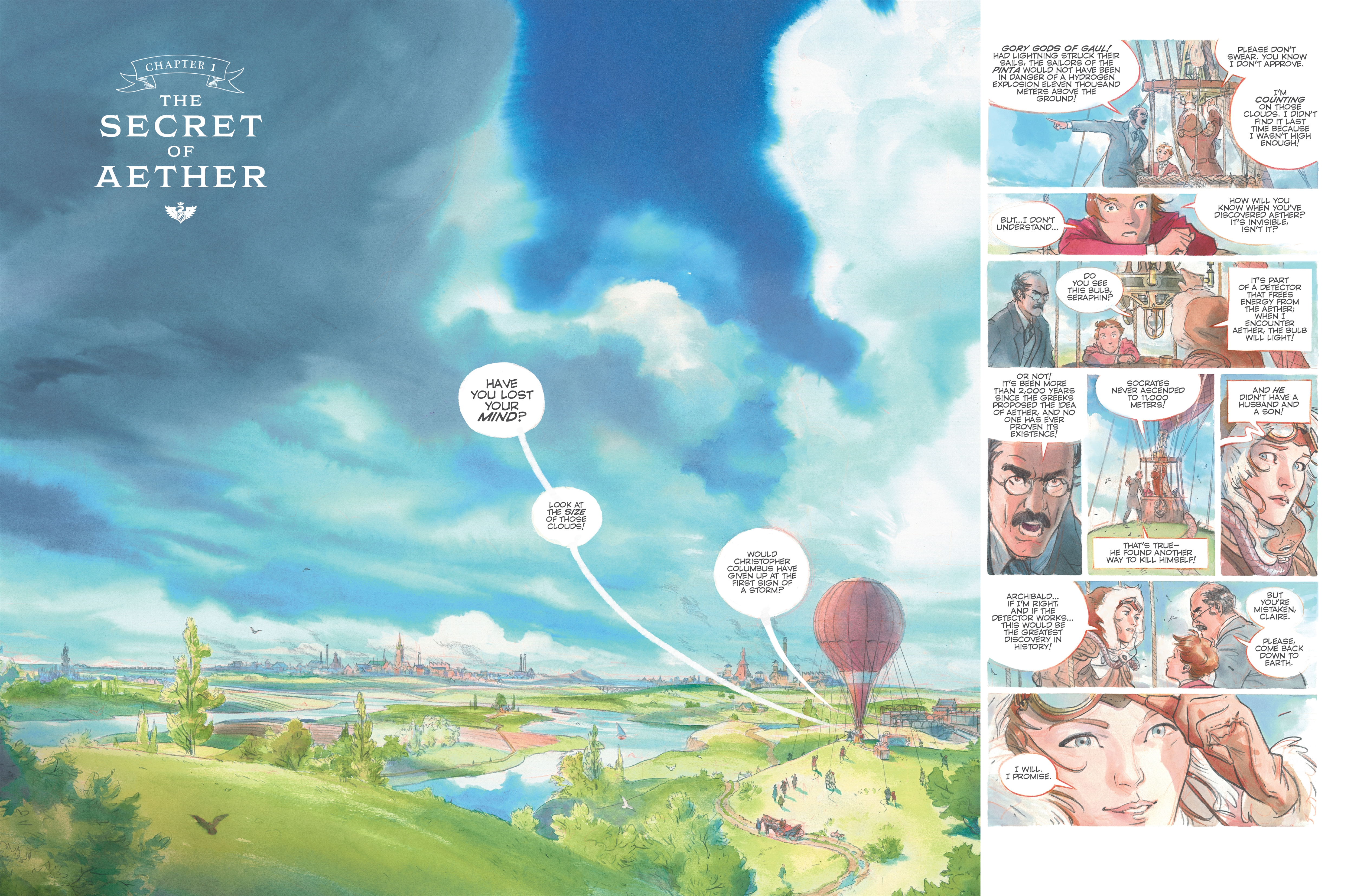 Seraphin is a young boy who loses his brilliant scientist mother, Claire Dulac, on her aether-seeking expedition. He’s being raised by his genius engineer father, Archibald, when the summons comes from the Bavarian king: he’s building a ship and he wants it powered by aether. Seraphin and his father narrowly duck a kidnapping attempt at the train station, arriving in Bavaria to discover a king who secludes himself from his people, consumed by his obsession, and betrayal within the castle walls.