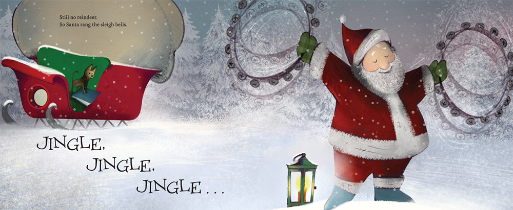 The latest release of Clement C. Moore’s classic 1823 Christmas poem, PJ Lynch imagines a sweeping Christmas tale, with watercolor and gouache illustrations rendered in shades of greens and blues to set the sleepy, evening mood. Saint Nick arrives on the scene, bringing warm reds and oranges. Lifelike artwork brings the team of reindeer to life, with texture and movement as they dance across the sky, carrying Santa and his sleigh full of toys. This telling of Moore’s A Visit from St. Nicholas is set in what looks like pre-Victorian England, in the time the poem was written. The artwork beautifully captures the stillness of Christmas Eve and St. Nicholas’s Christmas magic.