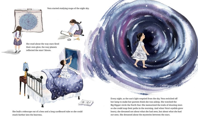 Breaking Through the Clouds is the picture book biography of Joanne Simpson, the first woman in the United States to earn her Ph.D. in meteorology, who went on to research clouds and weather. Touching on what seems to be a difficult childhood, through her work with World War II planes and her education and work with clouds and wind, Breaking Through the Clouds is an inspirational STEM story and a brilliant International Women’s Month profile. Helena Perez Garcia’s gorgeous illustrations blend realism with surrealism to show how Joanne Simpson was discounted by the men around her; the men who told her “no woman ever got a doctorate in meteorology. And no woman ever will”, and the Air Force clout that put her on a plane going through clouds to research them.