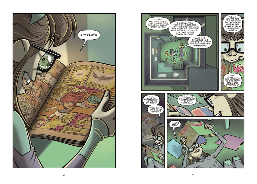 This was SUCH a good story, with manga-influenced artwork, fast-paced action and dialogue, and a socially relevant storyline. I love having Harriet Tubman, Frederick Douglass, and John Henry featured as superhero freedom fighters, even in the Great Beyond. Great art, great story, great book for middle schoolers. Make sure you’ve got this handy when you rejuvenate your collections. Oni Press has an educator/discussion guide for The Black Mage available here.
