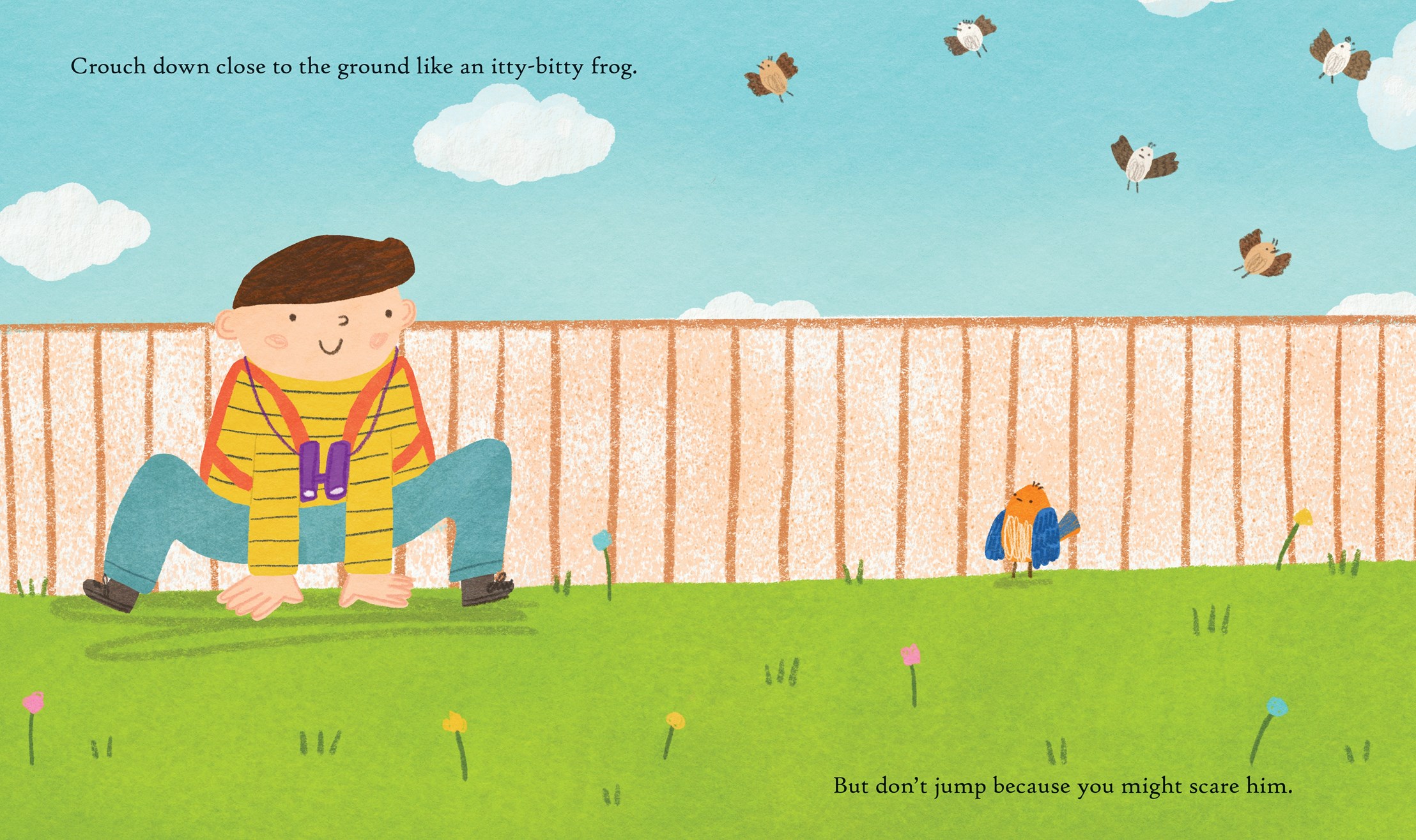 It’s a Spring alphabet! Filled with Spring images, this ABCedary is sure to be a hit. Cheerful, colorful illustrations will capture any reader’s attention, with playful alphabet choices like Apple Blossoms and Daisies; Ho thinks up creative ways to highlight other letters, like G, choosing the word “grow” and showing a worm next to a series of growing saplings; X for Extra Eggs, and Z for Zipper, showing the zipper of what could be a spring jacket. The book is well-constructed, with hardy pages that will hold up to multiple readings. A concept books essential, make sure to put this in your collections.