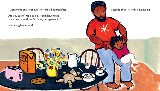 The true story of Opportunity, the Mars rover who captivated watchers on Earth, is the star of this picture book biography. Author Shaelyn McDaniel begins with a story of how humans set and achieved exploration goals: humans wanted to go to the sky, so we did. We wanted to go to the moon, so we did. But when we wanted to go to Mars, it was a little too far away, “so we sent a friend instead”. Opportunity , built by scientists, went into space and spent 15 years on what was originally 3 month mission, but a storm hit the planet, draining the rover’s batteries and shutting her down. McDaniel humanizes Opportunity with phrases like “Oppy called home often” and “she sent selfies so we would know she was okay”; as Opportunity shuts down, scientists sent a lullaby – “a kiss from her friends on Earth”. It’s an emotional moment, made more poignant by Cornelia Li’s digital illustration of a satellite broadcasting colorful musical notes into space. Much of the illustration is orange-red tinged, with and there are genuinely breathtaking moments as Opportunity roves the Red planet, groves digging into the ground and layered dunes. Endpapers show Mars from the Earth’s point of view and Earth from Mars’s point of view, and back matter includes more information about Opportunity. A bibliography is available via QR code. Hello, Opportunity will endear the rover to a new generation of sky-watchers who may be inspired to find her on Mars one day. A sweet storytime addition to your space collections. A downloadable activity kit includes games and the opportunity to send a postcard to Opportunity.