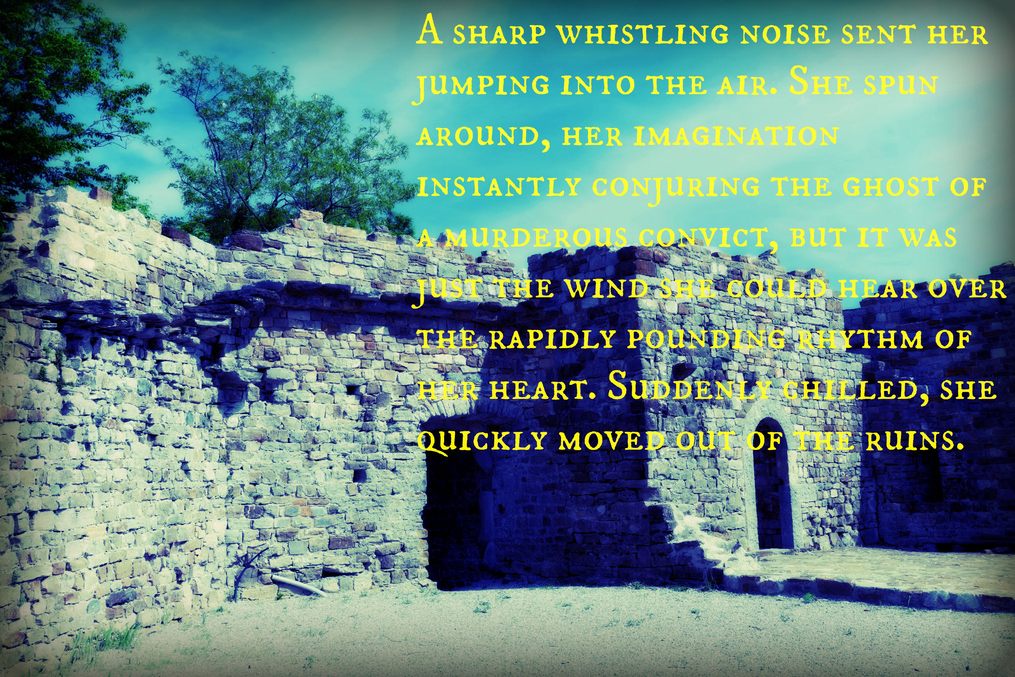 Amazed, she walked in through a doorway, trying to work out what type of building it had been. There had been a large central room with many tiny rooms opening from it. They were small, storerooms perhaps? Exploring deeper into the ruins, there was a room that had been more protected at the rear and the purpose became apparent. The stubbed remains of bars were still embedded in the stone in one section and in the corner of the room were cross hatched markings on the walls, counting off the days. She was standing in a convict gaol.