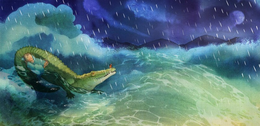 The oft-recounted story of Baby Moses’s journey as an infant gets a rhyming take. On the first spread, we see a woman looking off page, face twinged with sadness, as she reaches a hand out toward an infant in a basket on the other page, tiny hand reaching up from the basket. On the next page, the rhyme begins the story of Baby Moses’s journey down the River Nile, where denizens of the river – Curious Ibis, Mama Hippo, and Mighty Crocodile – watch over him to keep him safe until he arrives in the arms of the pharaoh’s daughter. Gentle earth colors guide the reader through each spread, as do the movements of each of the animals and the basket itself. Baby Moses carefully watches everything around him at first, eyes open and hands outstretched, and gently naps as different animals guide his basket to safety. The story ends with pharaoh’s daughter holding him up in the air after taking him from his basket, all the animals surrounding the two, having seen him through to his destination. A bittersweet ending and a hopeful one all at once. A gentle story for the upcoming Passover season, for Sunday school, or any reason.