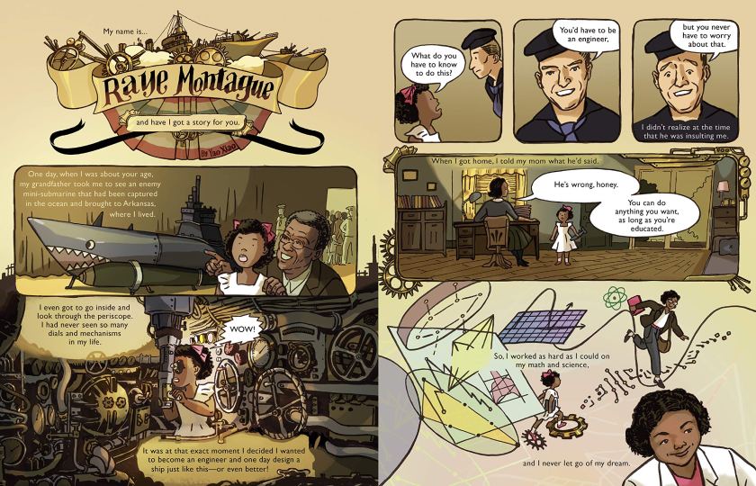 Shaun Tan’s classic is available in paperback release, and this is a modern classic that deserves a spot on every shelf. A moving story of immigration with a touch of the fantastic, The Arrival is told with beautiful pencil illustrations that resemble old sepia photographs. A man leaves his wife and daughter, traveling by locomotive and steamship to… a new world. In Tan’s universe, images we are familiar with: Ellis Island, families sleeping on crowded trains and ships, close-ups of frightened and hopeful faces, share a world with fantastic creatures both adorable and dreadful. Completely wordless, Tan’s illustrations speak volumes as we see the man struggle with learning a new language and the companion animals that seem to accompany the residents of this new land. Tan taps into the immigrant experience in a way that reaches readers’ hearts as well as their minds. An Author’s Note goes deeper into Tan’s inspiration. Pair with a sketch pad and pencils for a budding artist.