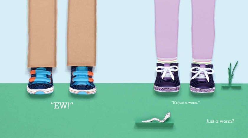 This STEM/STEAM focused rhyming adventures stars a a young inventor named Layla, who creates a robot friend. The two create other robots, spend some time tinkering, and throw a robot dance party that will have readers dancing in their seats during a readaloud (or, if you’re like me, get them up and dance). I love a good tinkering story (add The Most Magnificent Thing, Izzy Gizmo, Geraldine, and the Questioneers series for a STEAM-tastic display and readaloud). Layla is a brown-skinned girl wearing an orange jumpsuit and green pompoms on her head – who says science can’t be fun? The rhyme scheme is playful and consistent, making for a fun readaloud; the robots are adorable and look like they’ve been tinkered from items around the house, like a colander and springs. Layla’s room is full of fun details: toys mix with science tools like beakers, yarn, a sewing machine, tape, test tubes, and measuring tape. Fun for early STEAM clubs! 1, 2, 3 do the Robot teaches STEAM concepts and is the companion to Robinson and Beardshaw’s 1, 2, 3 Do the Dinosaur (2020) and 1, 2, 3, do the Shark (2021).