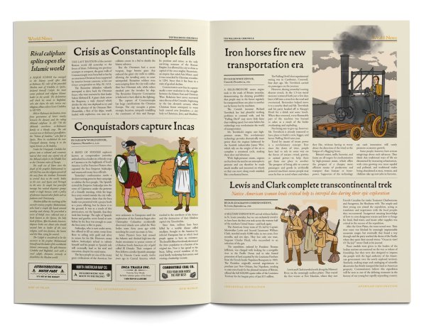 The Wallbook Chronicle is an 18-page “glorious gallop through fourteen billion years of big history”: printed to look like a newspaper, articles include major world events with bylines and dates, like the “Solar System origins clouded in swirls of gas” article by the astronomy editor from Paris, 1796 and the geography correspondent’s 1806 article on Lewis and Clark completing their transcontinental trek. A letters section from “would-be readers down the ages” has commentary on events including the sacking of King Tut’s tomb and the fire-bombing of Tokyo in 1945; a quiz tests readers’ mettle. There are three Timeline Wallbooks available: Big History, Science, and Nature; all developed in conjunction with the American Museum of Natural History. Definitely a fun gift choice.