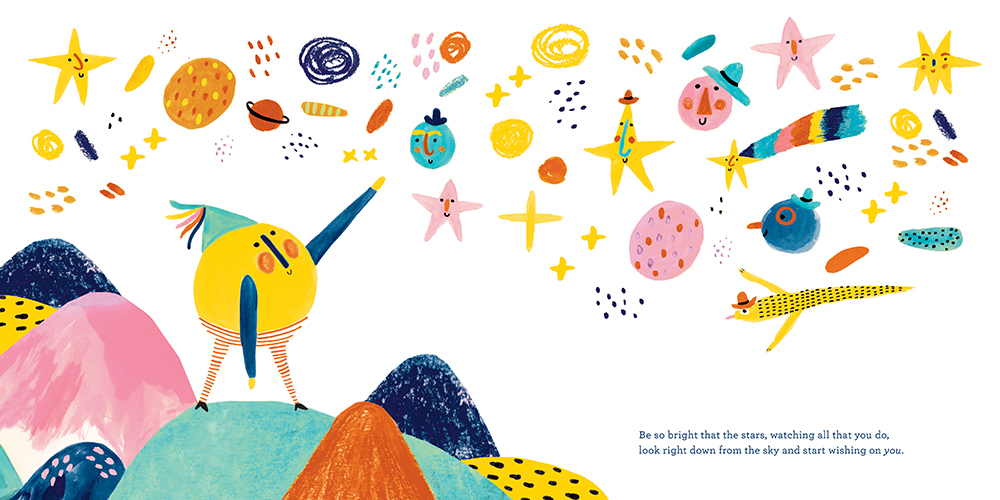 A young boy and an egg demonstrate cause and effect using action words in this adorable board book. The boy sees and egg, and reaches for it; grabs the egg, and it wiggles; as the egg hatches, he and his new friend play together, introducing words like play, stomp, dance, and wiggle to new readers. The illustrations are bright and bold, emotive, joyfully playful, and loaded with action and movement. It’s a celebration of discovery and new friendship, perfect for developing readers and listeners.