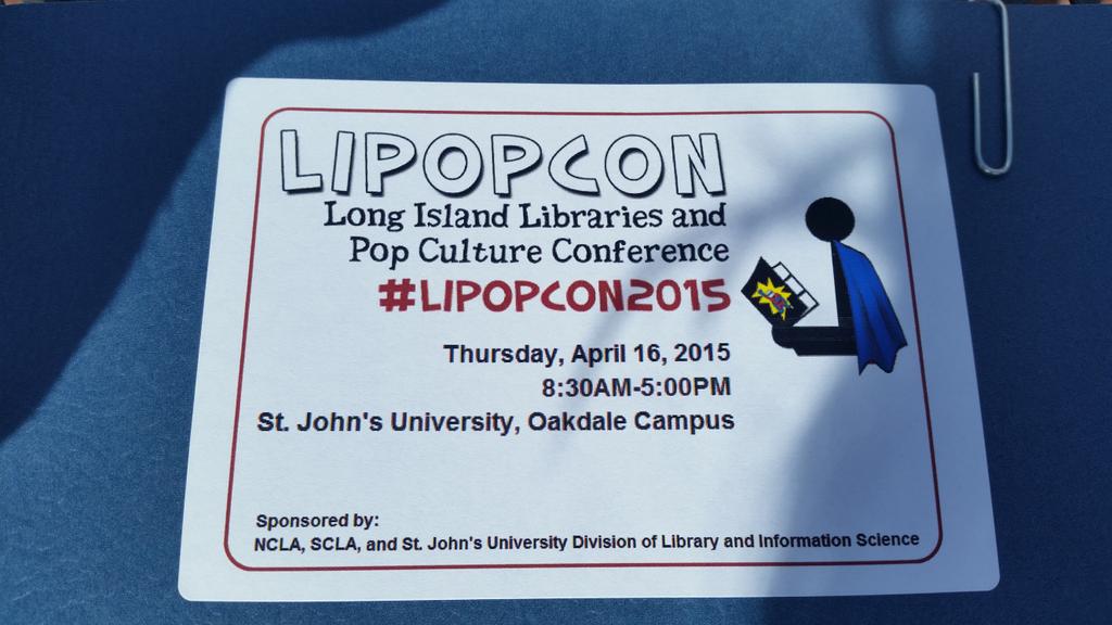 Whew! I’ve done it. I’ve spoken on my first panel. I was a guest at the first (hopefully annual) Long Island PopCon, a pop culture conference for librarians, educators, and students held at St. John’s Oakdale Campus. I got a nice nap on the LIRR in, and after a couple of coffees, was ready to go. I met some great exhibitors, got to hear Raina Telgemeier give a brilliant keynote at our lunch, and attended great panels – there were so many great panels lined up, I need to look into cloning technology for next year, so I don’t miss out on anything.