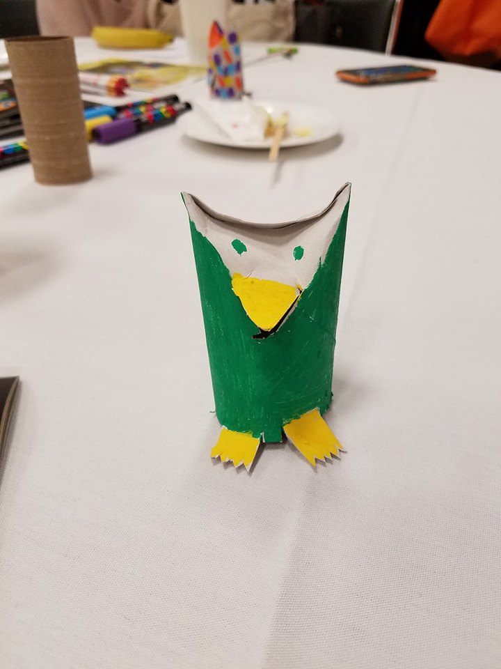 There were several maker events, and that’s right up my alley. One of my favorites was the DK maker event promoting their new book, Out of the Box. It’s filled with cardboard engineering projects. Projects that you can make using cardboard! I’m a librarian, I’m surrounded by boxes all day long, I got this! We each received a tote bag, and sat at tables with toilet paper rolls, paint pens, scissors, and instructions on making our own cardboard tube owls. My fellow make-brarians and I had a blast, laughing, talking, and trying to make our owls look like… well, owls.