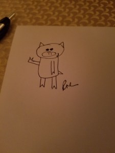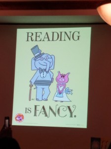 Every author and illustrator spoke with such passion about their book; I wanted to go home and read them all in one night. They’re currently waiting for me to get to them – more to come. Mo Willems taught us how to draw Piggie, from Elephant and Piggie, and I even found the power of speech to speak with him about the power of using the Pigeon when running a storytime workshop for parents a couple of years ago. What an evening.