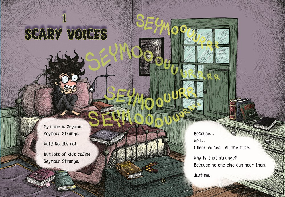 Seymour Strange (that’s not his real last name) sees ghosts, even if no one else does. In his first adventure, How to Trick a One-Eyed Ghost, Seymour and his best friend, Ozzie, find themselves being chased by three wacky ghosts.