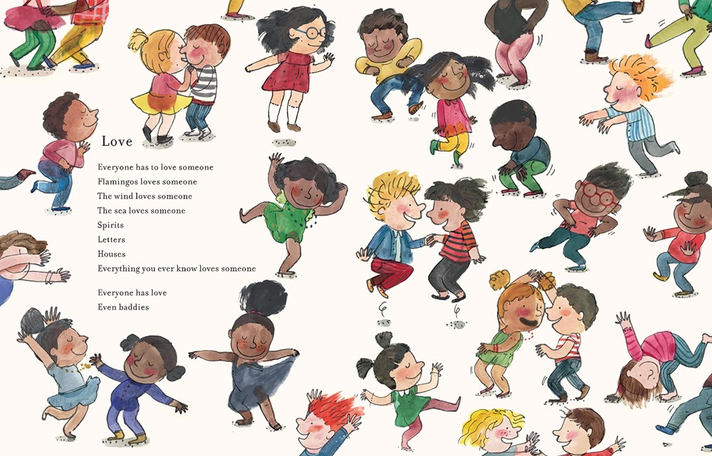 Enjoy this collection of poems that shows the world through a preschooler’s eyes. Nadim, the author, wrote these poems when he was a 4-year-old preschooler (his sister and his preschool class have piece in here as well) after discovering poetry at school. The poems are adorably created, by children for children, with observations on love: “Everyone has love / even baddies”, beloved teachers: “Miss Angela is nice. / Miss Angela smells like flowers. / Miss Angela is warm. / Miss Angela sounds like a bell, ringing gently”, and best friends: “He’s as fast as anyone – / Faster than everyone – / And everyone you’ve ever seen. / And he knows pretty much everything / About aliens”. The poems are a true, wonderful look into a preschooler’s mind; a sweet, comforting hug kids and adults alike could really use to get through a rough day. Essential reading for Poetry Month and beyond, teachers can use Nadim’s Take Off Your Brave as a class project jumping off point and create their own poetry collections to share. A note from Nadim’s mother explains how Nadim discovered poetry. Yasmeen Ismail’s watercolor illustrations are a joyful celebration of being a child, with a diverse group of children and animals playing together. Take Off Your Brave was originally published in the UK in 2021.