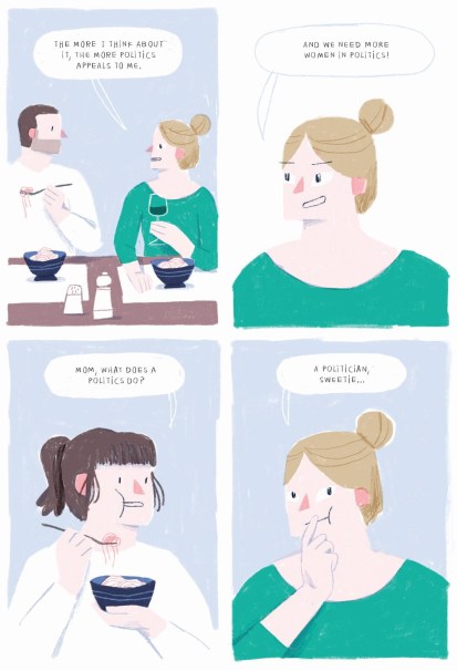 Valérie Plante’s fictional memoir of taking on the male-dominated political scene to become the first woman elected Mayor of Montreal, Okay, Universe introduces us to Simone Simoneau, a wife and mother who decides that she’s “hit a plateau” at her job; when her community volunteering leads to the chance to run for municipal office. The story follows her through the relentless door-knocking, hand-shaking, and life juggling she undertakes on her path to the election. The story calls out gender inequality, from graffiti on her campaign posters to her mother praising Simone’s partner, Hugo, for “helping” rather than “doing his share”. The book focuses on Simone’s dedication to community service and the betterment of the quality of life for everyone, as well as her dedication to her family, and how hard that balancing act can be. The artwork is colorful, and readers will love reading this birds-eye view of entering the political arena.