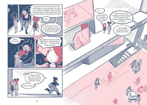 Life aboard a space station is never boring, especially when you have to cobble things together to keep things running. Sanity Jones, and her best friend, Tallulah Vega-Davisson, certainly know how to keep things interesting aboard Wilnick Station: their latest experiment is Sanity’s project; a three-headed kitten named Princess Sparkle Destroyer of Worlds (one name for each head, naturally!). Princess Sparkle is discovered, but the kitten escapes into the duct system. As the girls go on the search for their pet, before she can get hurt or caught, Dr. Vega, the station’s senior scientist and Tallulah’s mom, has bigger problems on her hands: Wilnick Station is experiencing some big-time glitches that could put the station at risk. While some of the crew point their fingers at Princess Sparkle Destroyer of Worlds, Sanity and Tallulah find evidence of something else in those ducts. They’ve got to solve the mystery and save their kitten, and they may just have to rescue the whole space station!
