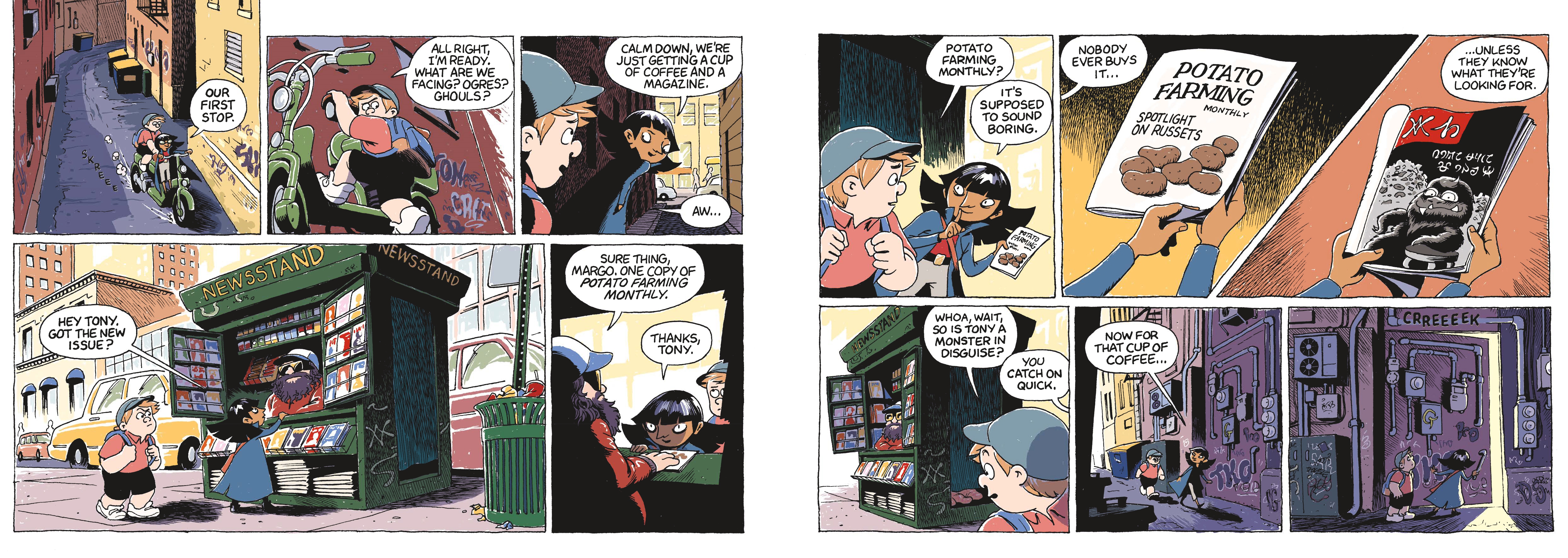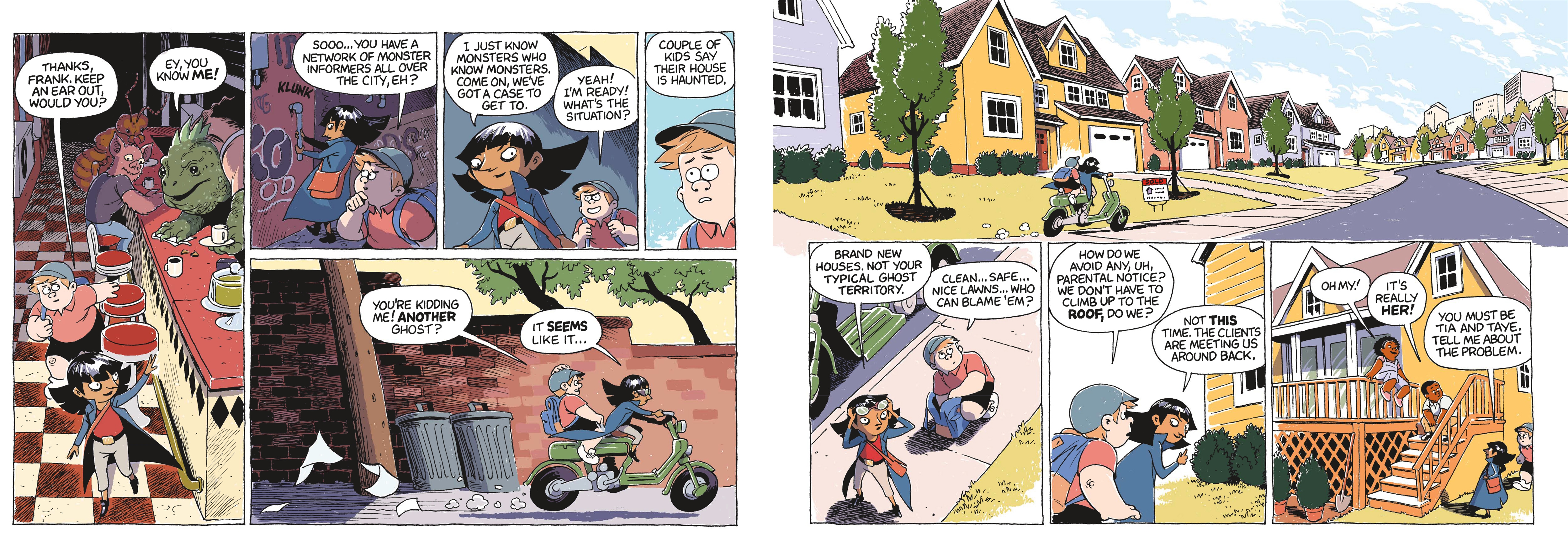 The third Margo Maloo adventure is full of heart and humor, and introduces some new drama. Monsters’ hiding places are being discovered and they’re being run out by ghost-hunting teens, kids, and developers, who want to raze old buildings to make way for expensive new luxury housing (sound familiar?). There’s tension building between Margo and Charles, her assistant in monster ambassadorship, because Charles’s background as a monster journalist makes him a little sus in her eyes. A setup leads to a big misunderstanding between the two friends, but they have to put their differences aside when a family of giant spiders need to be saved from a factory about to be blown up!