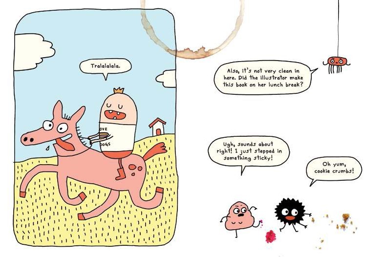 A sight familiar to any kid or caregiver, You Can Be starts readers off with a carefree kid, clad only in underwear, running across the cover. And you know this is going to be a kid-friendly book about being a carefree, happy kiddo. Elise Gravel starts off by telling readers, “There are many ways to be a kid. You can be…” and proceeds to bring readers through weird and wonderful ways of being a kid: funny and sensitive; noisy and artsy; grumpy and smelly (sometimes… complete with toot cloud!). Kids are diverse and the drawings are bold and bright, each adjective large, bold, colorful, and fun. The message here? You can be angry, you can be smelly, you can be funny, or quiet… there’s no wrong way to be a kid. After all, as Elise Gravel says, “you can feel “almost any way you feel like being. (Except mean or rude, of course.)” I love that gender doesn’t define anyone’s mood here: girls are smelly, boys are artsy; kids are kids. It’s a great message to readers about self-acceptance and self-awareness.