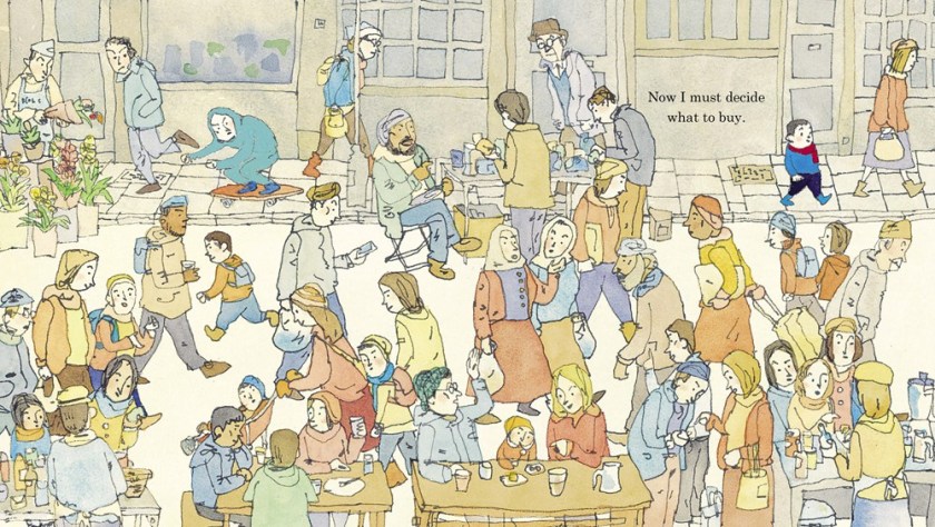 While you’re tucking your little one into bed, there’s a whole world hustling and bustling outside. While You’re Sleeping is all about the folx who work while the rest of the world sleeps: people who clean public transportation and offices; delivery drivers; mail sorters, bakers, shopkeepers, and more, all work through the night to get the world ready for everyone else that next morning. Even the animal world doesn’t settle in for the night: foxes pass humans on the street as they forage for food, bats and owls hunt for prey. John Broadley’s illustrations remind me of Beth Krommes’s artwork; there’s so much detail to be discovered. Colors grow warmer as the night turns to dawn, with red-orange sunlight streaking through windows and down streets. Read with Karen Hesse’s Night Shift for a storytime about night time jobs.